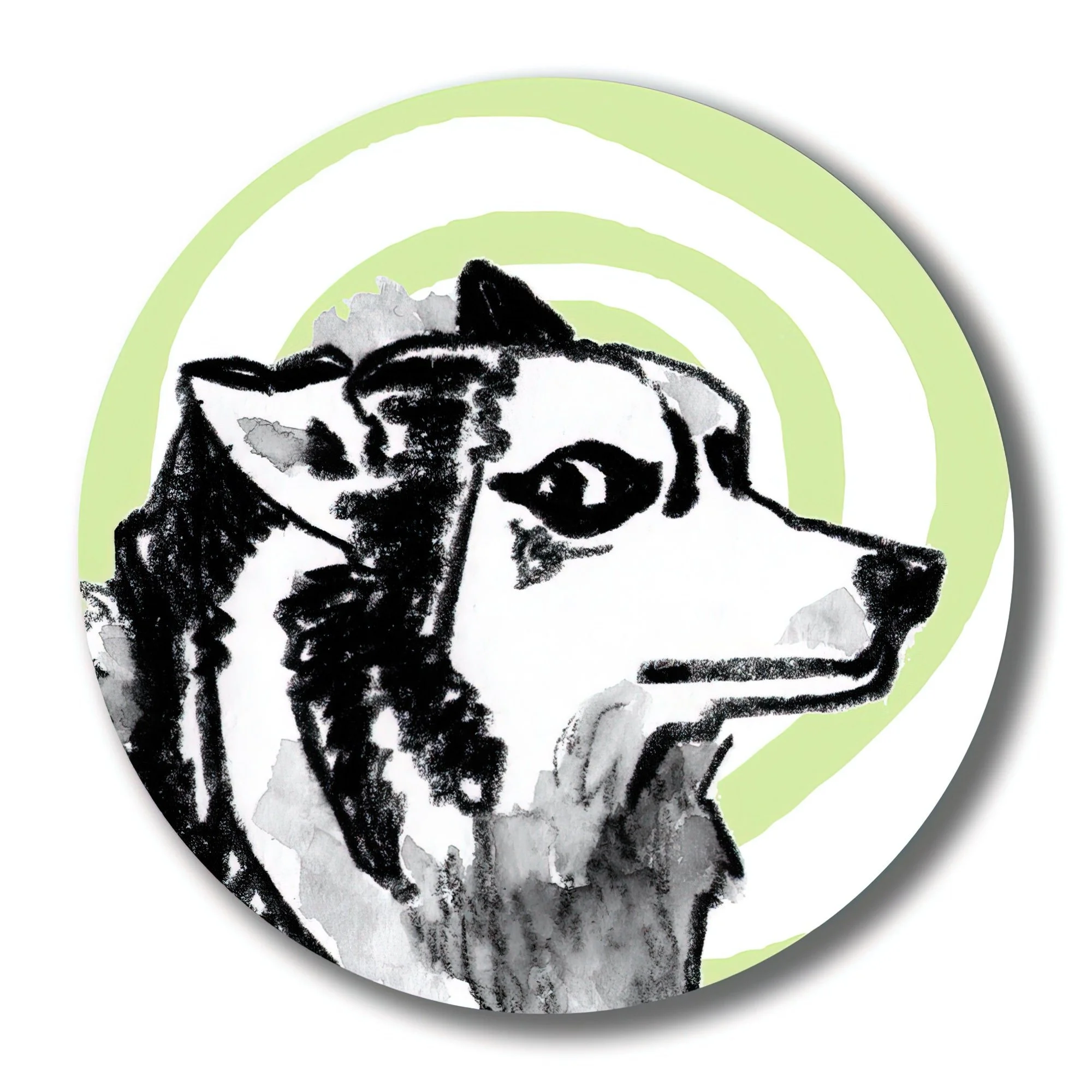 Zeus the Husky-Malamute gives you the side eye. He is ready for his walk now. This original art is a combination of water-soluble crayon and digital elements. Perfect the the husky lover in your life! | 3" high quality round vinyl sticker