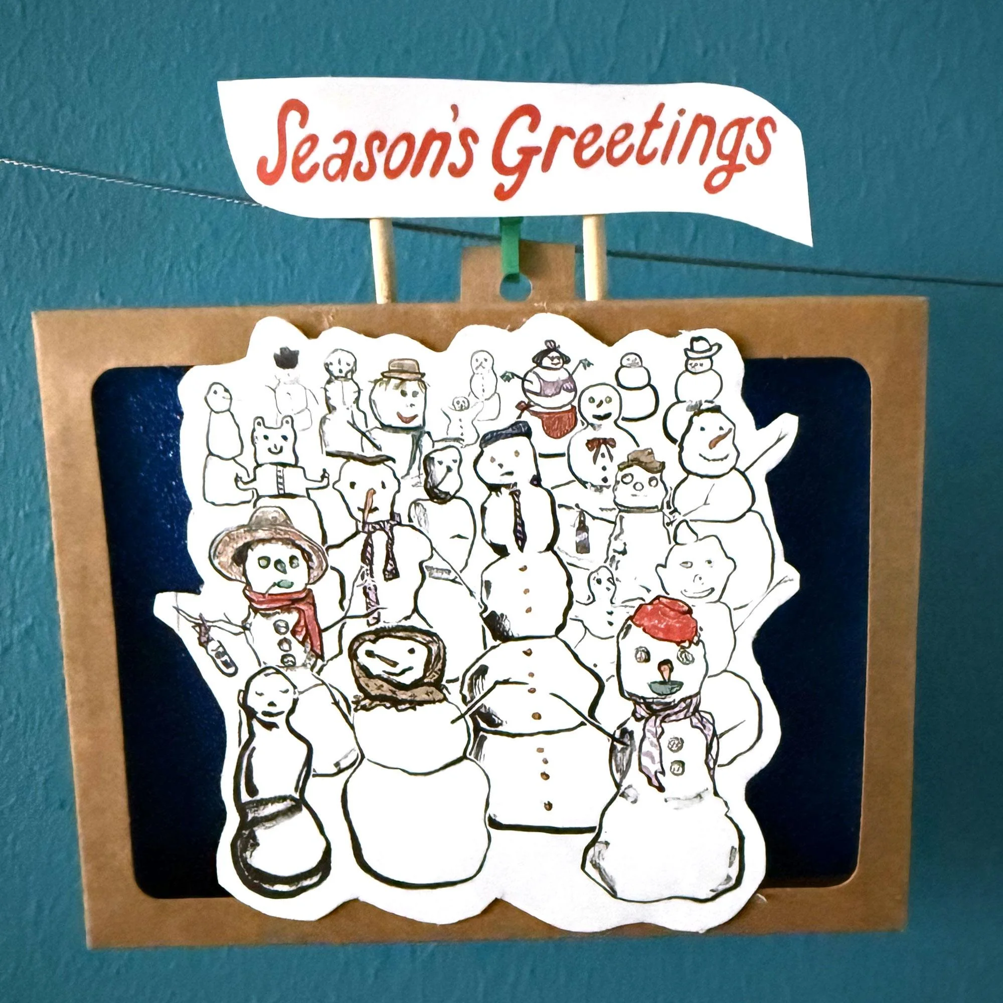 This charming 3D wall art features dozens of hand-illustrated snow folk in all shapes, sizes, and personalities. From cowboys to fancy-dressed snowpeople, each character brings their own style to this inclusive winter celebration. The hand-cut snowpeople scene and "Season's Greetings" banner are mounted on a lightweight kraft box, creating dimensional art that can hang on your wall or sit on a shelf.